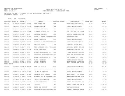 2010 2011 Period 09 May Check Register Pharr San Juan Alamo
